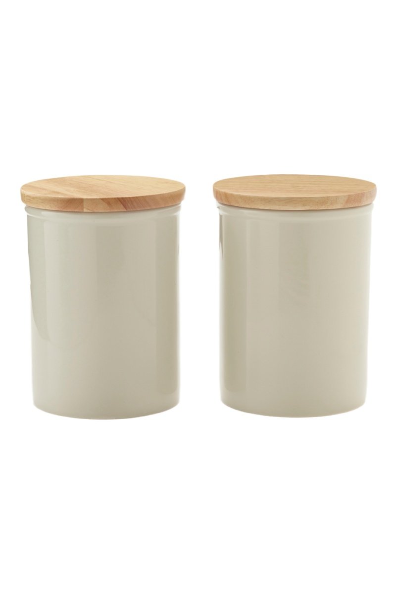 2 caixas de conservação em cerâmica com tampas em bambu - 12,5 x 18 cm