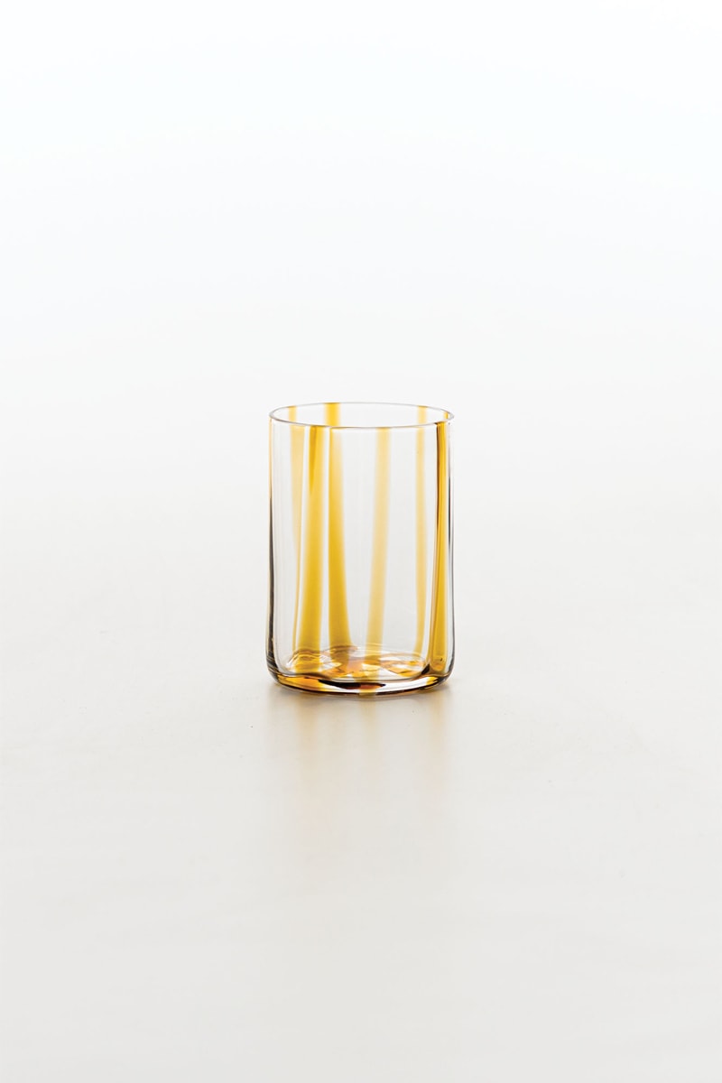 No fundo do copo, as linhas de cores alternadas ou tons fluentes que marcam a espessura e embelezam as formas, até fazer vibrar a borda brilhante.