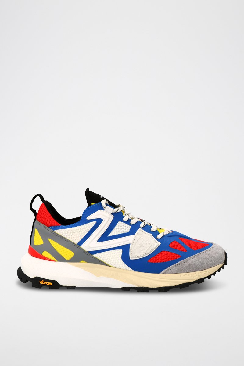 Cor: azul-real, vermelho, cinzento-claro e preto