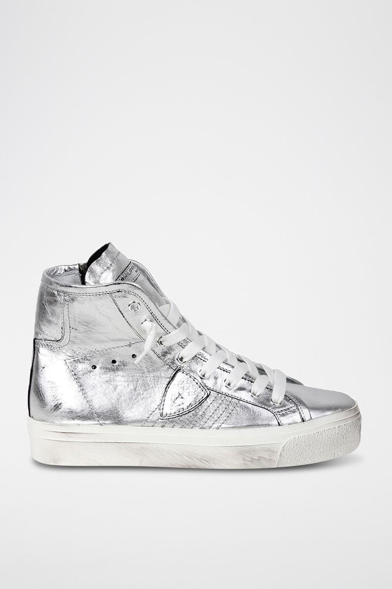Sapatilhas subidas em couro - Prateado