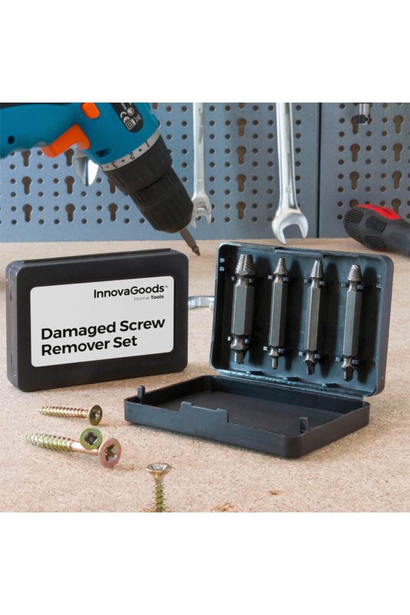 Cada broca de efeito duplo perfura a cabeça dos parafusos e retira-os posteriormente sem esforço.