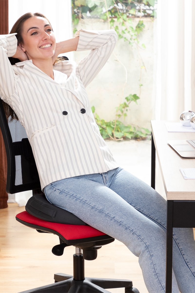 Ajuda a aliviar dores dorsais e a manter uma posição sentada descontraída e confortável.