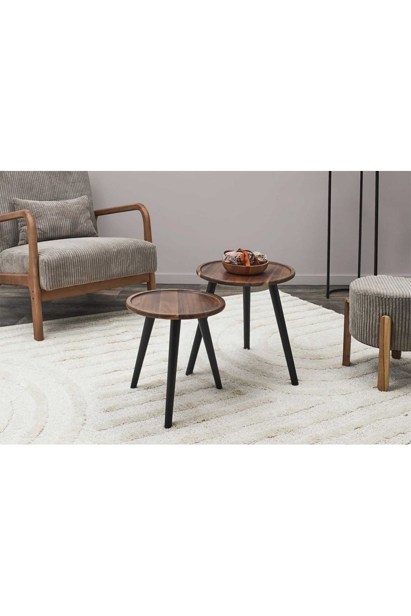 2 mesas encaixáveis em madeira de acácia e pinho - 38 x 39,5 cm / 33 x 33 cm