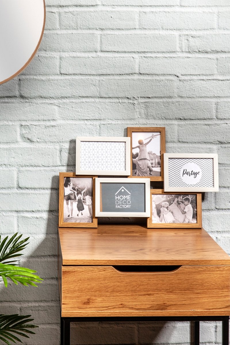 Moldura para 6 fotografias - 10 x 15 cm - Branco e imitação de madeira