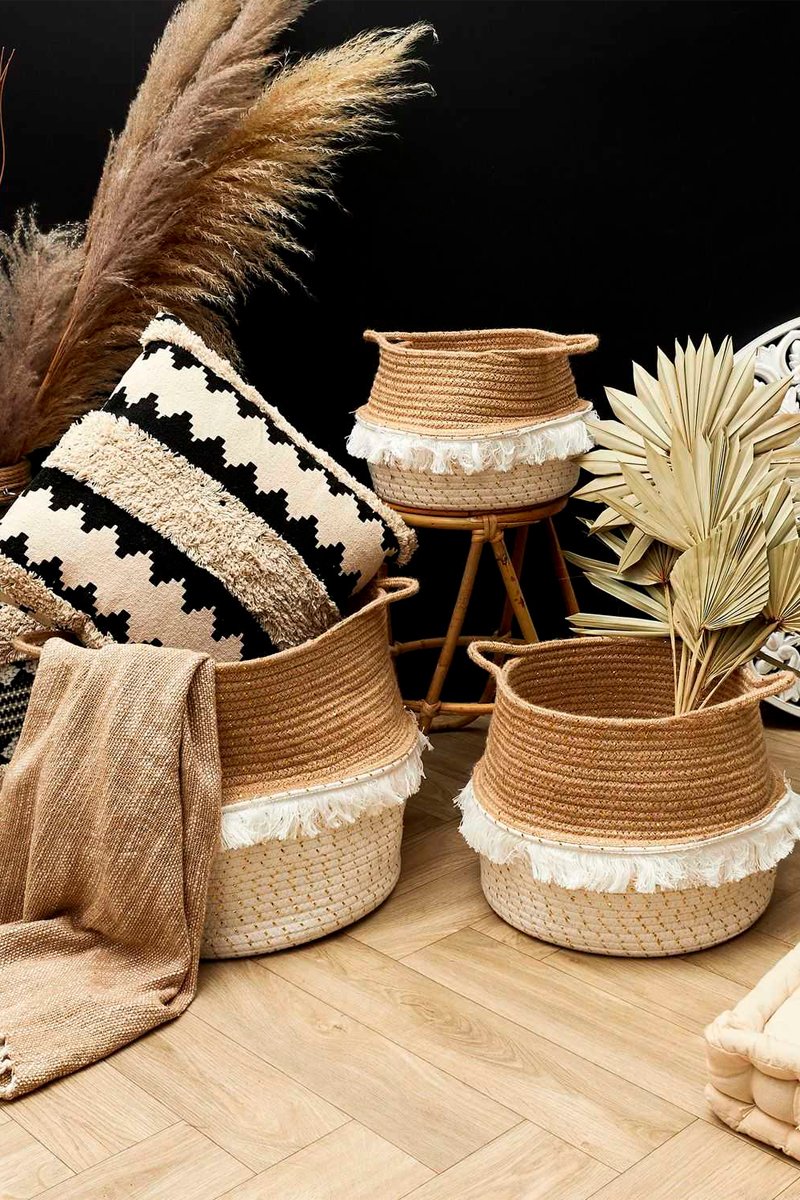 3 cestos de arrumação - Natural e branco