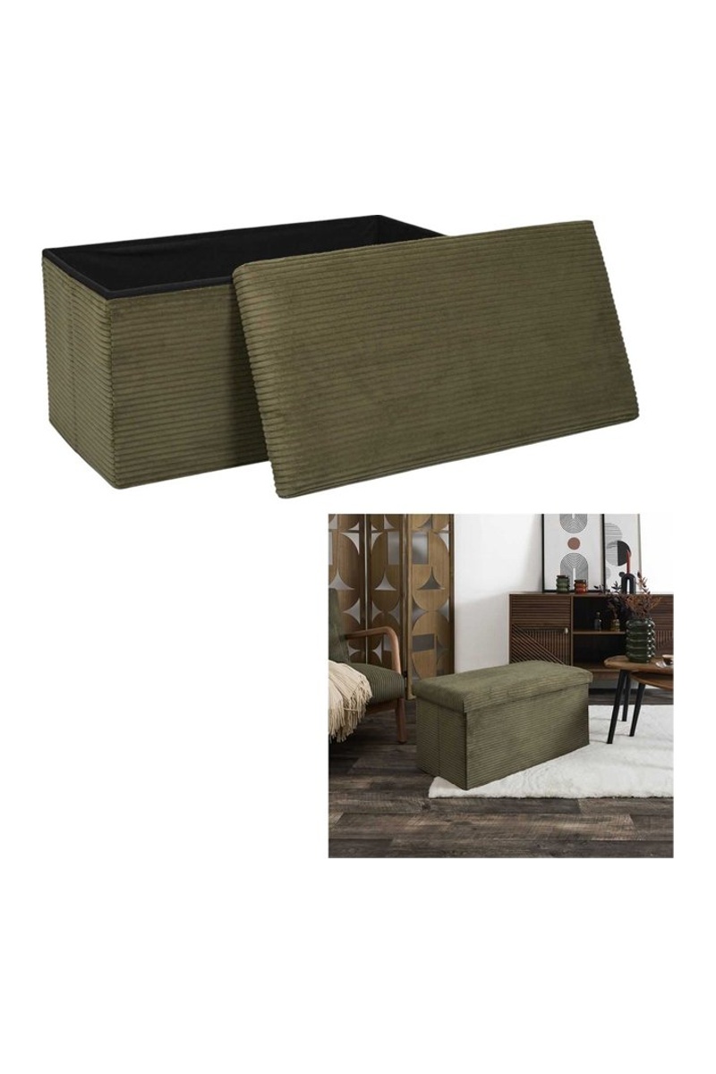Banco-baú em madeira Scott - Verde-escuro - Toque veludo