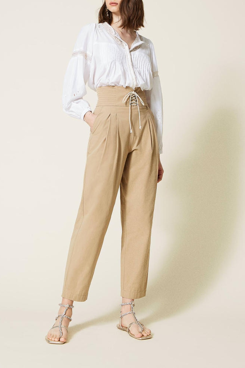 Calças direitas de cintura subida - Bege