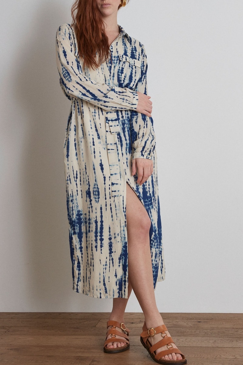 Vestido-camisa tie and dye - Cru e azul-cobalto