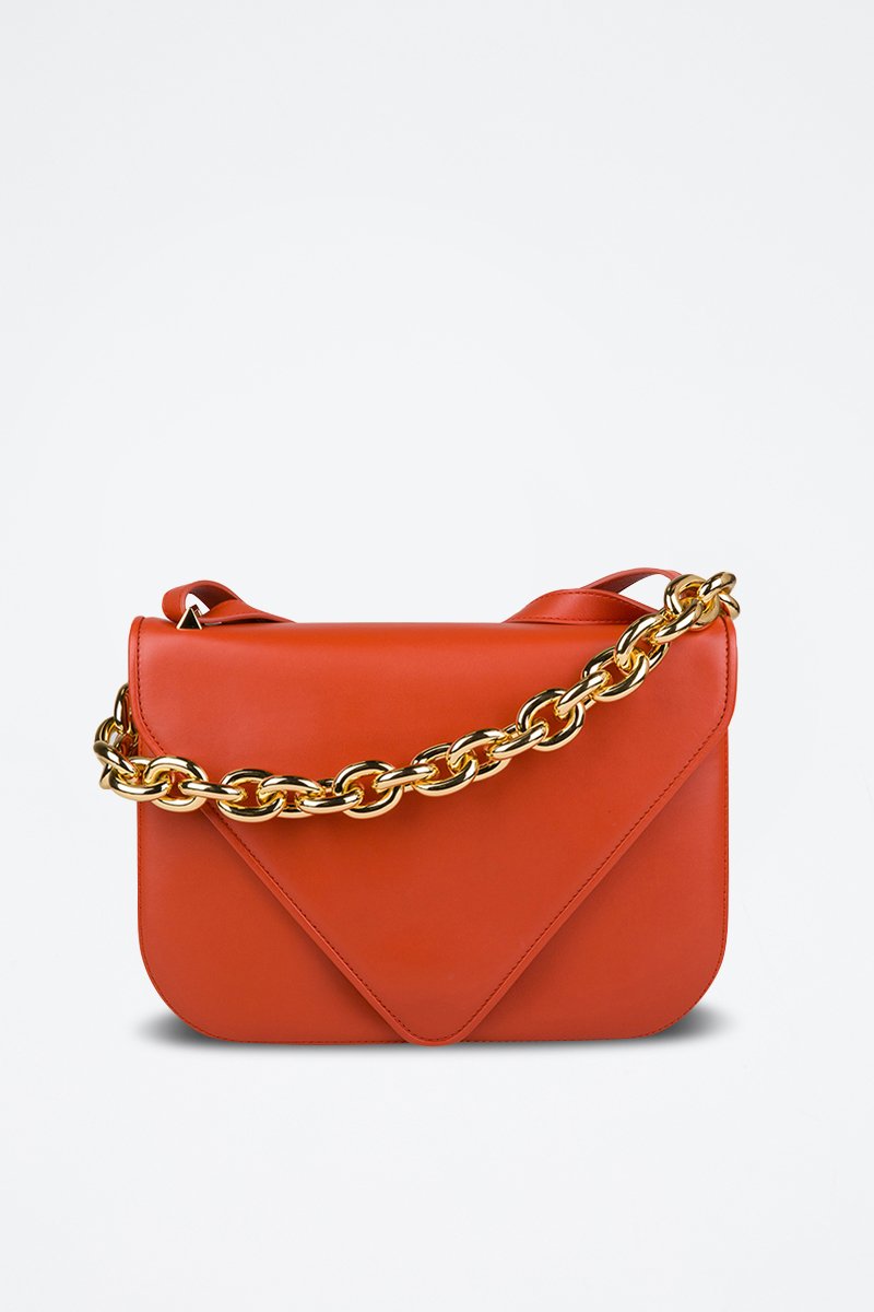 Mala de ombro de couro de vitelo Mount - Laranja e dourado - Bottega Veneta