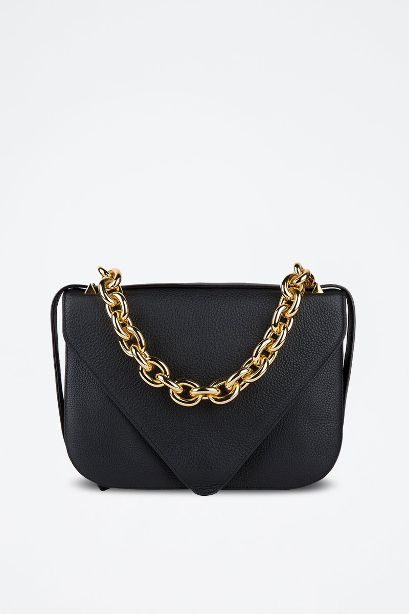 Mala de ombro de couro de vitelo Mount - Preto e dourado - Bottega Veneta
