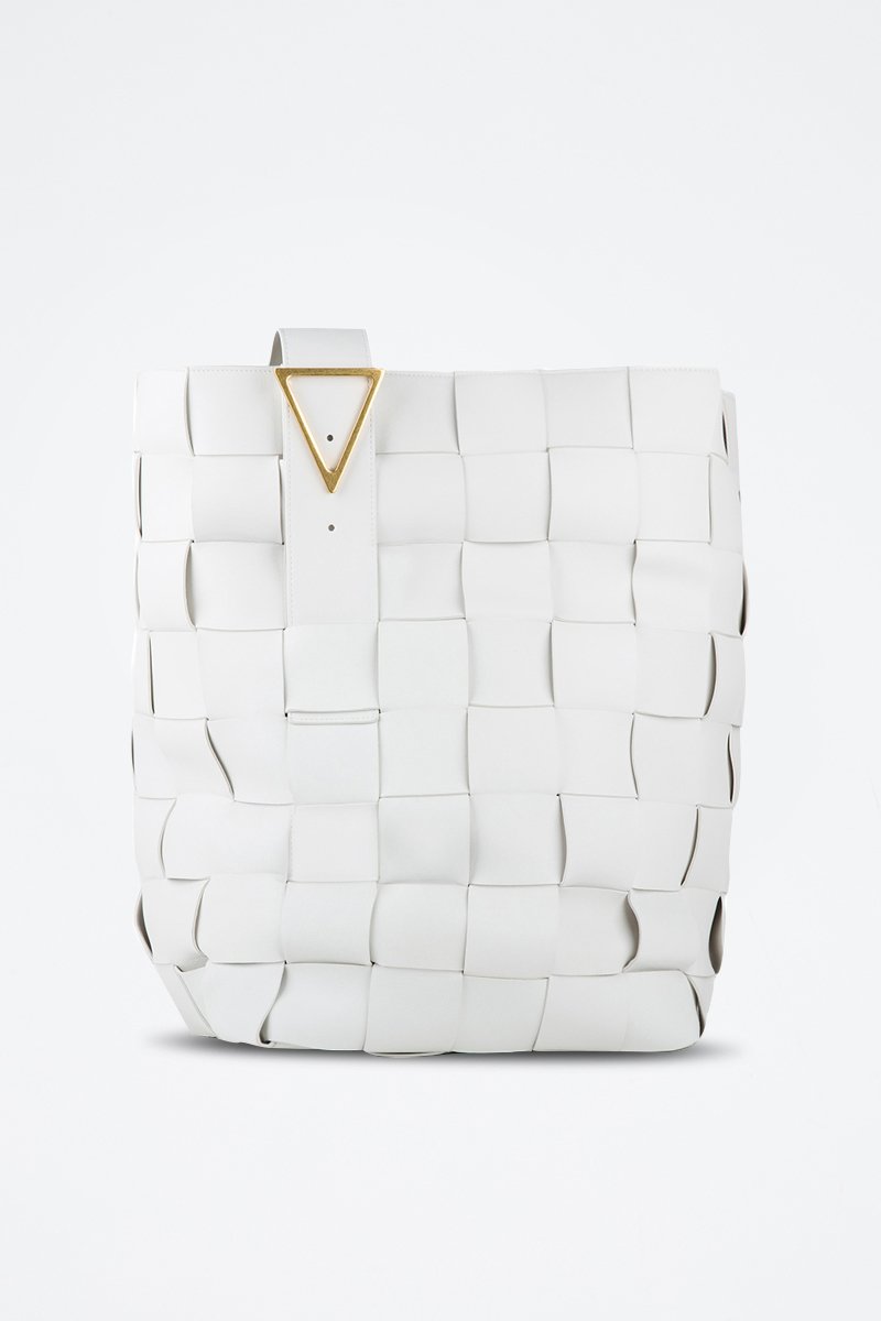 Mala bucket de couro de cordeiro Intreccio - Branco e dourado - Bottega Veneta
