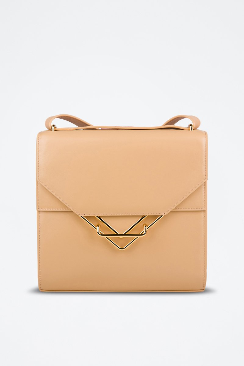 Mala a tiracolo em couro de vitelo e couro de cordeiro.