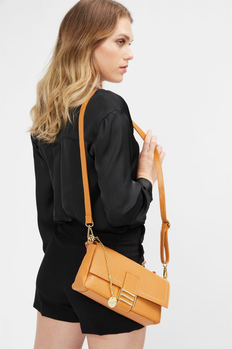 Mala a tiracolo de couro Lipa - Mostarda