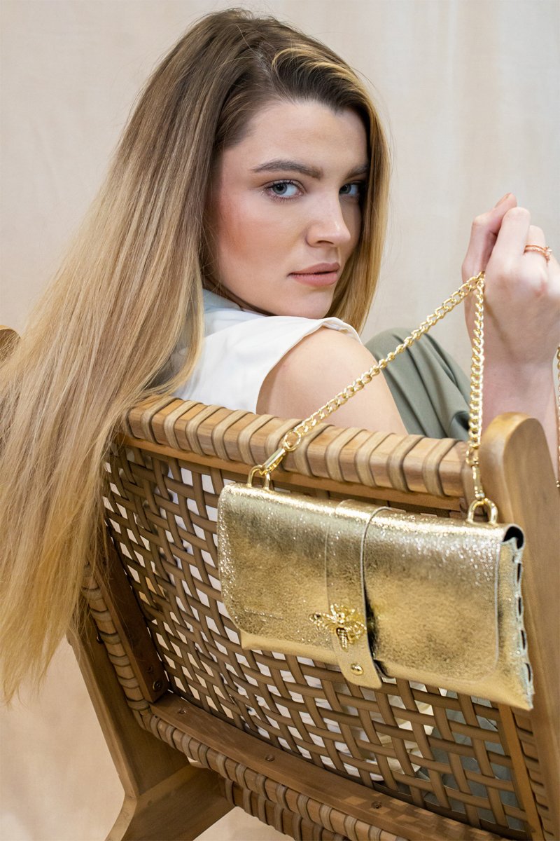 Mala a tiracolo em couro Ivy - Dourado