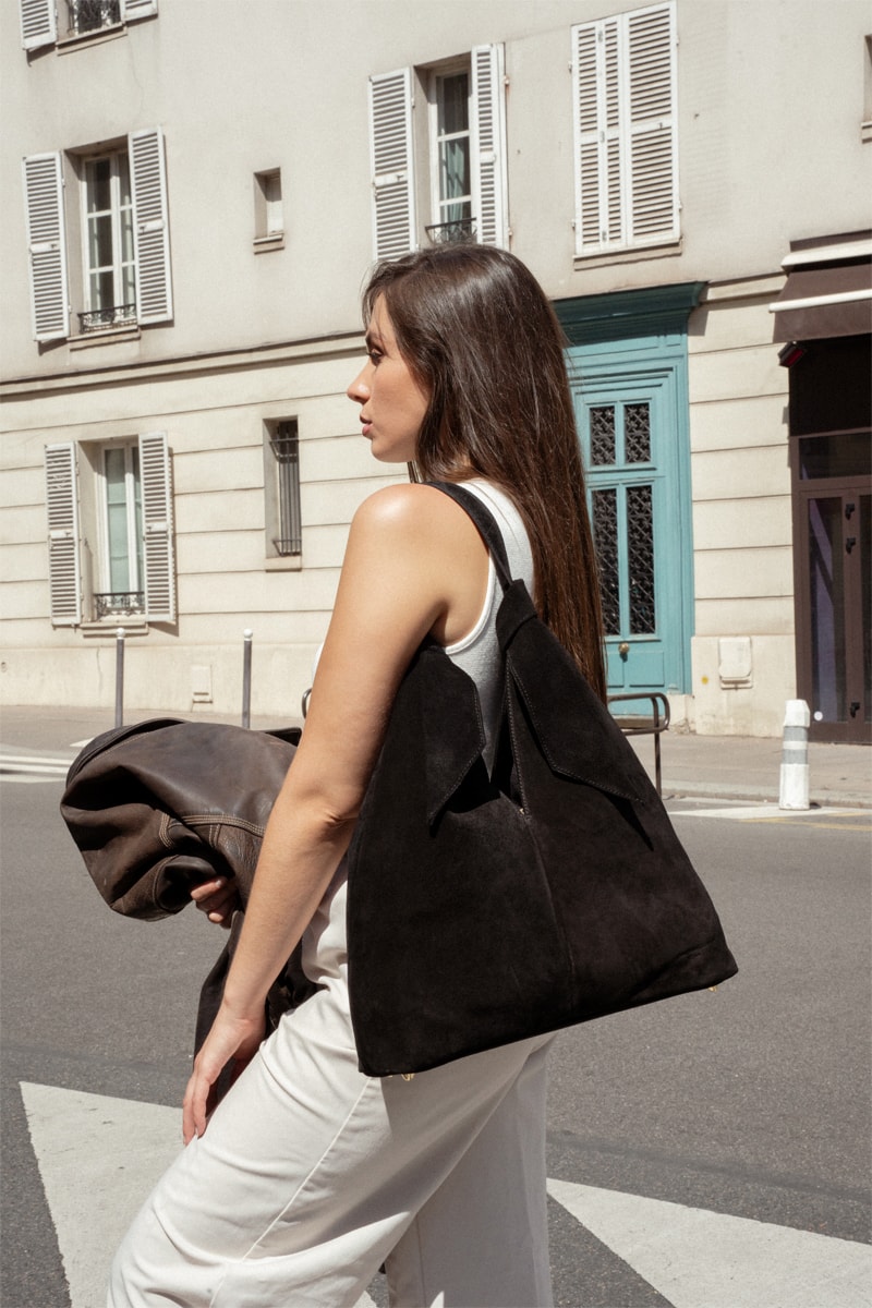Mala de ombro em nobuck Elan - Preto