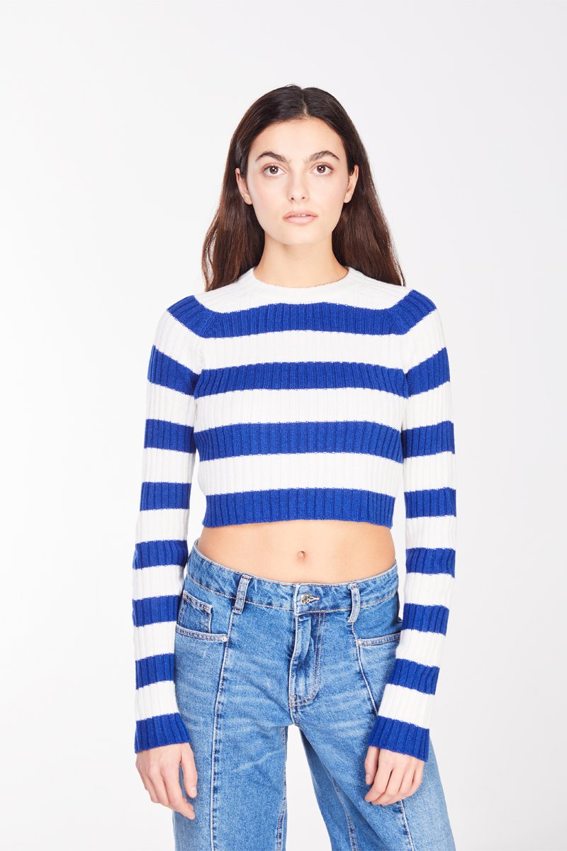 Camisola curta - Branco e azul-cobalto