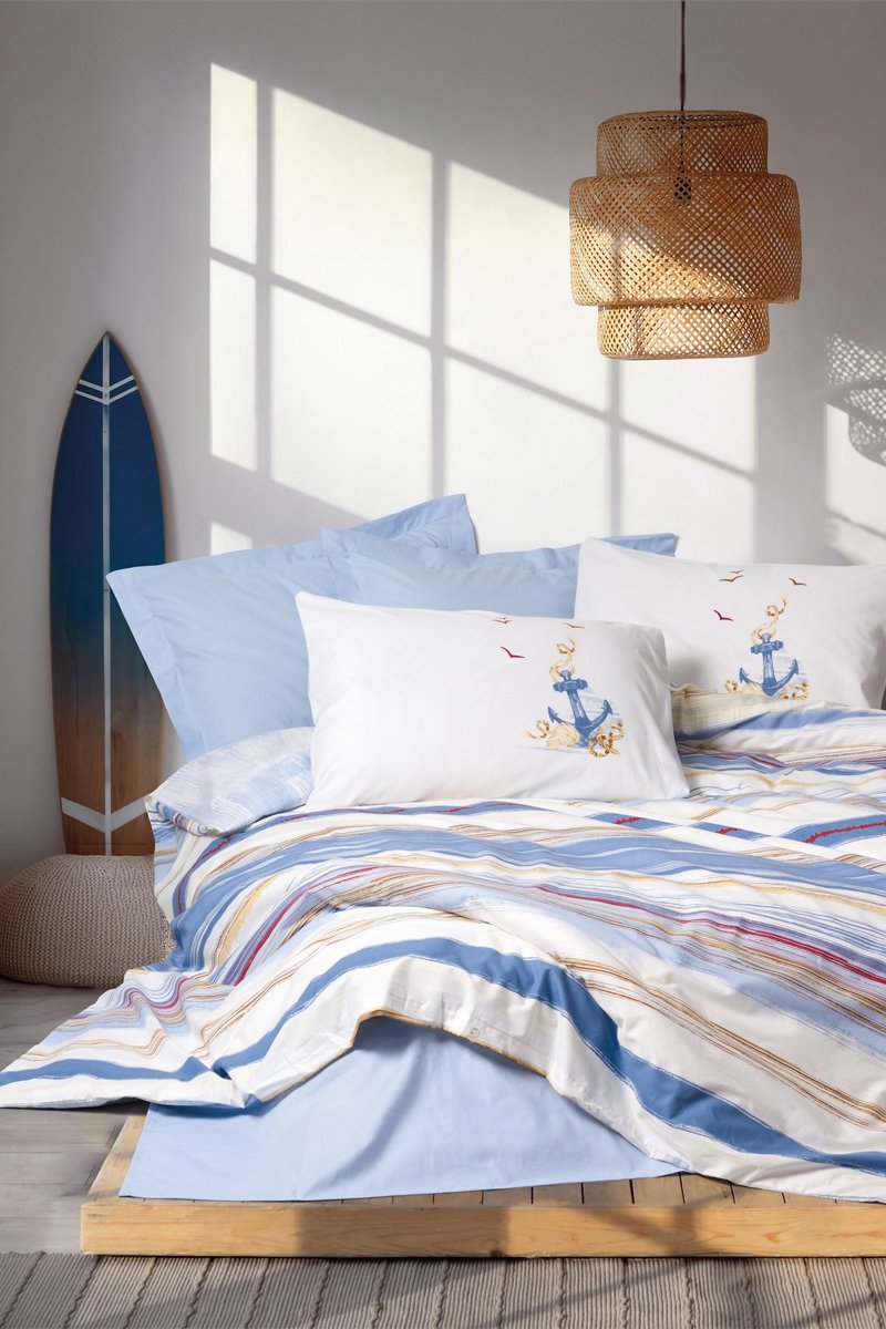 Conjunto de edredão de algodão 145 fios/cm² Moreno - Azul