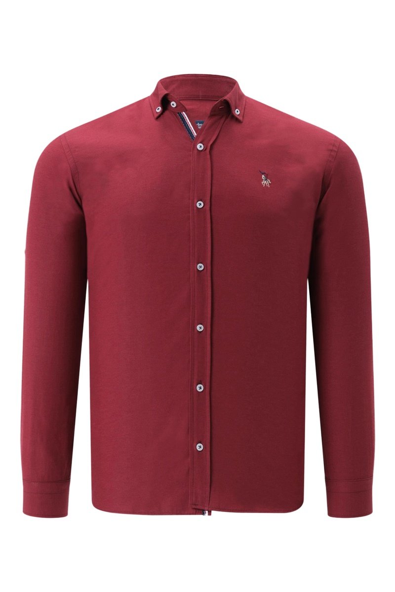 Camisa de mangas compridas arregaçáveis com tira abotoável.