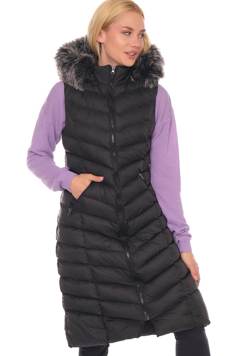 Blusão comprido - Preto - Bege e preto