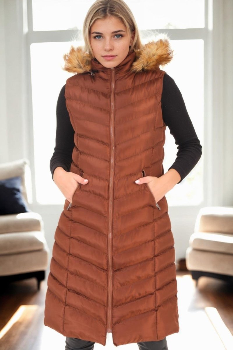 Colete acolchoado comprido.