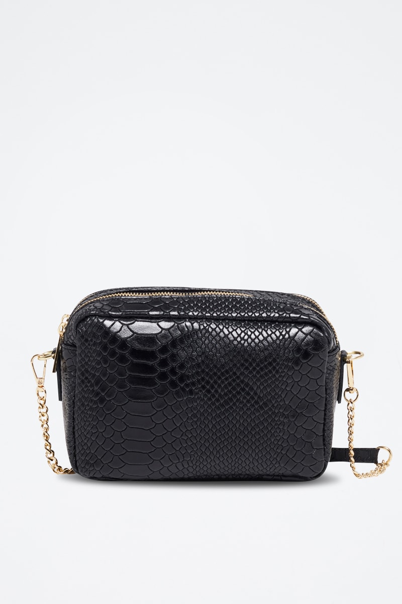 Mala a tiracolo de couro efeito réptil.