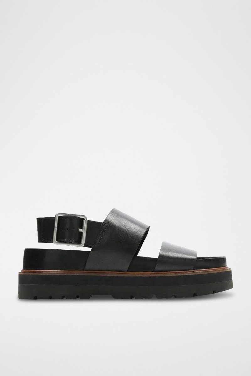 Sandálias com plataforma em couro flor integral Orianna - Preto