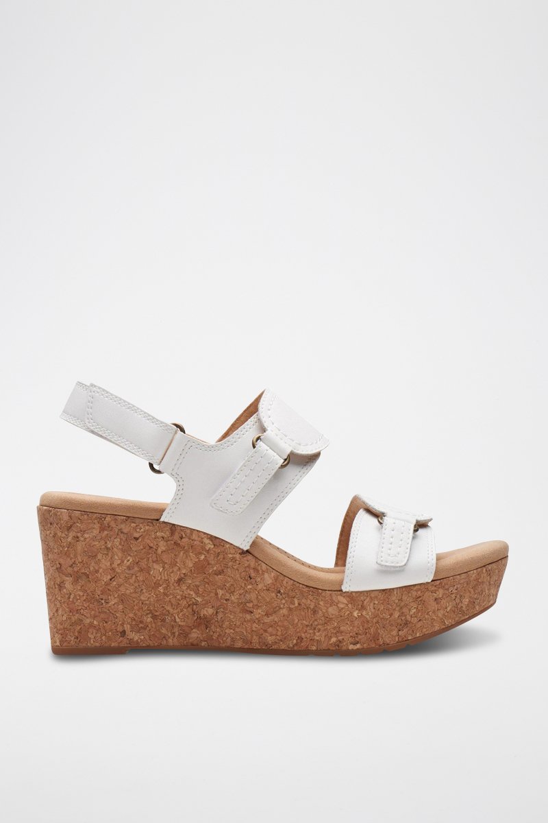 Sandálias com cunha em couro Rose - Branco
