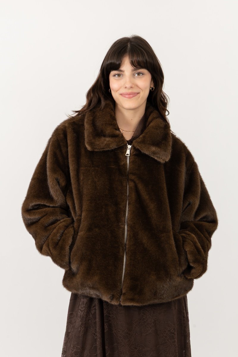Casaco em pelo sintético.