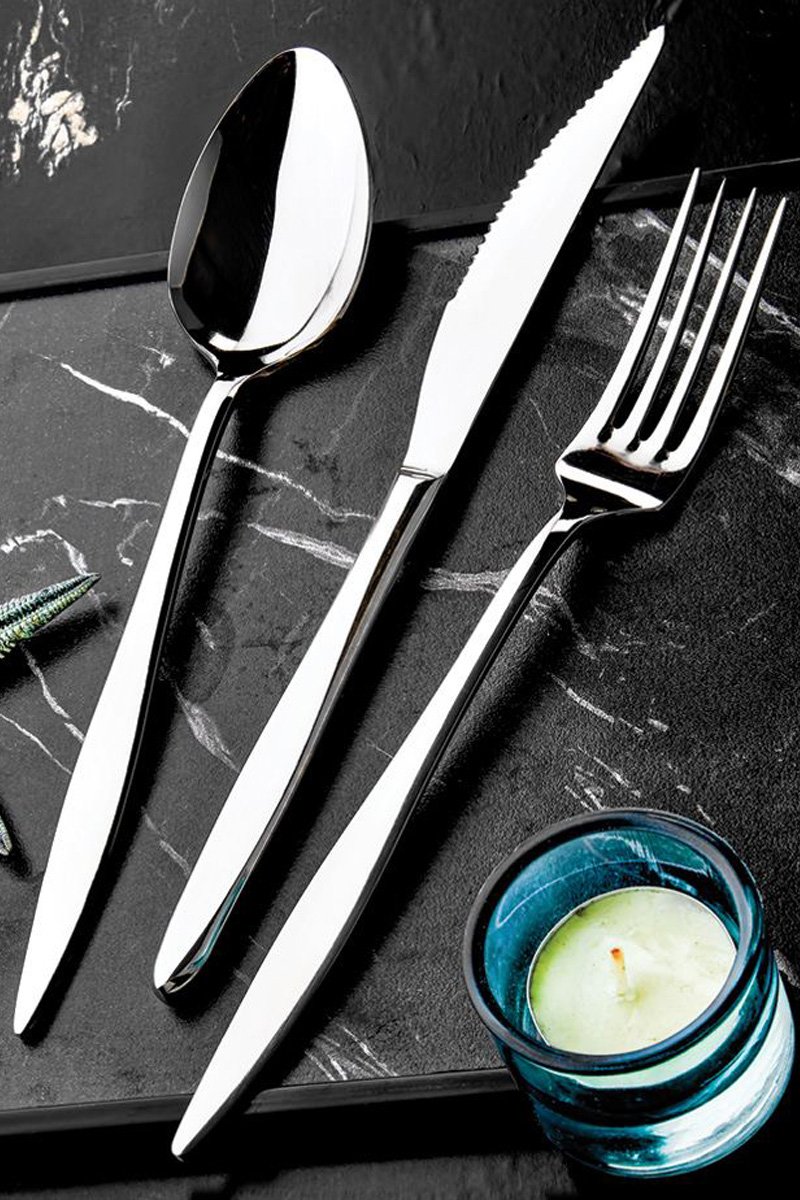Faqueiro em aço inoxidável com: