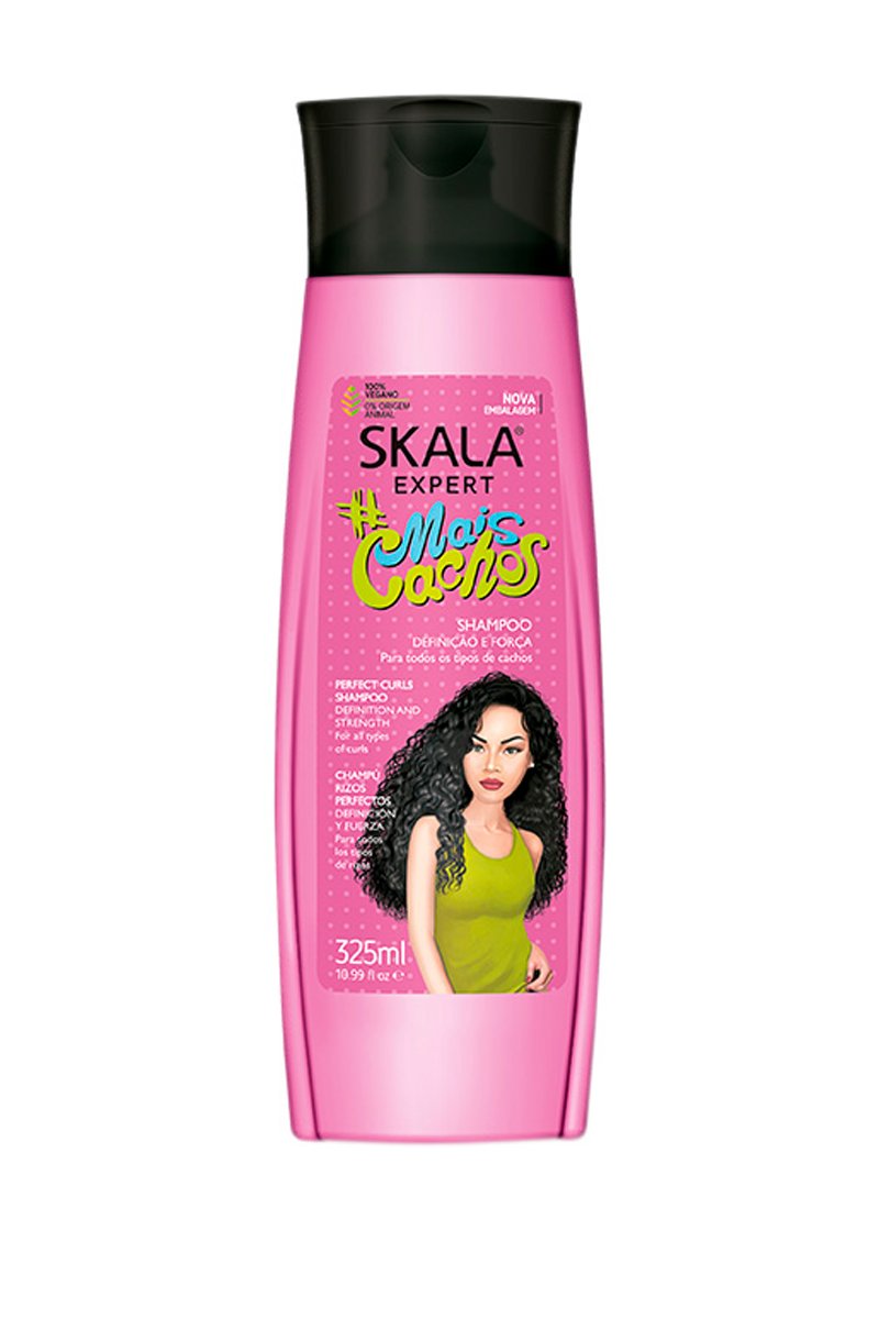 Conselhos de utilização: distribuir uniformemente da raiz até às extremidades. Emulsionar para fazer espuma. Enxaguar abundantemente. Para obter melhores resultados, aplicar o condicionador Skala Mais Cachos.