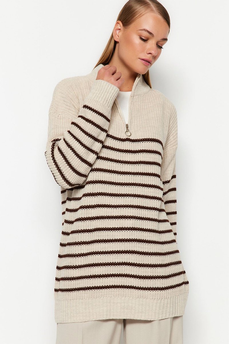 Gola subida com fecho zip.
