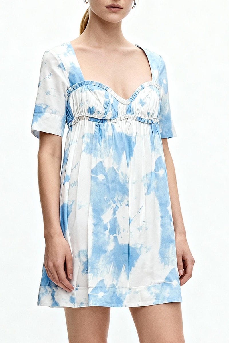 Vestido direito tie and dye - Branco e azul-celeste