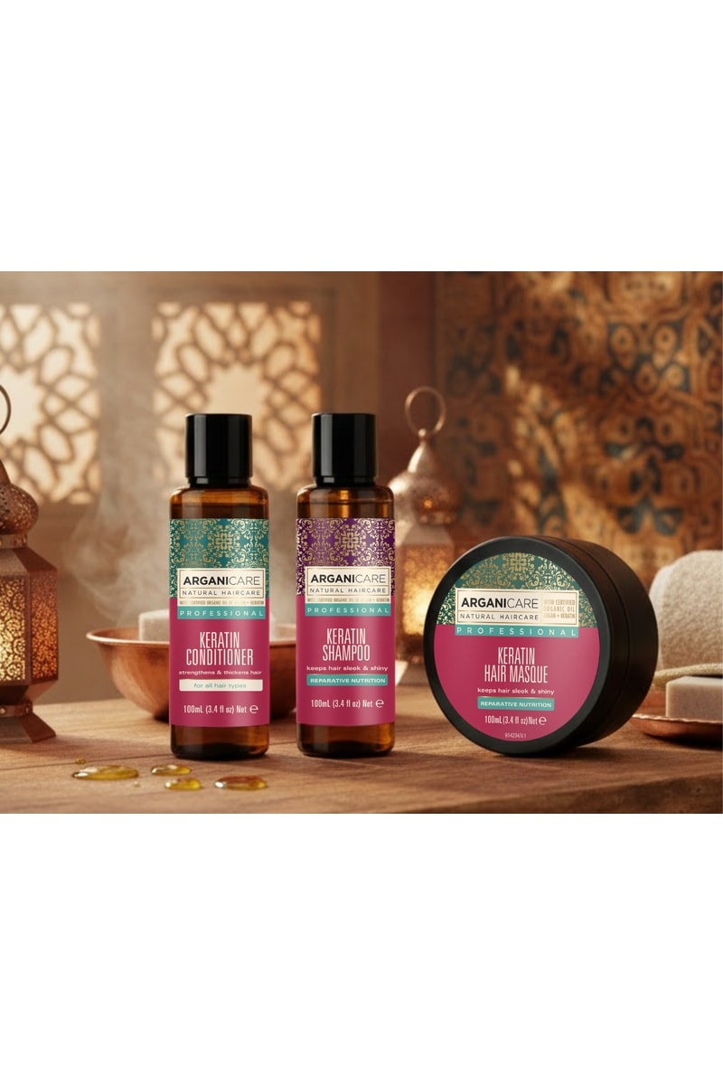 Ofereça ao seu cabelo um cuidado profissional completo onde quiser com este pack trio formato viagem com queratina, especialmente formulado para reparar, alisar e proteger os cabelos danificados, secos ou tratados com químicos.
