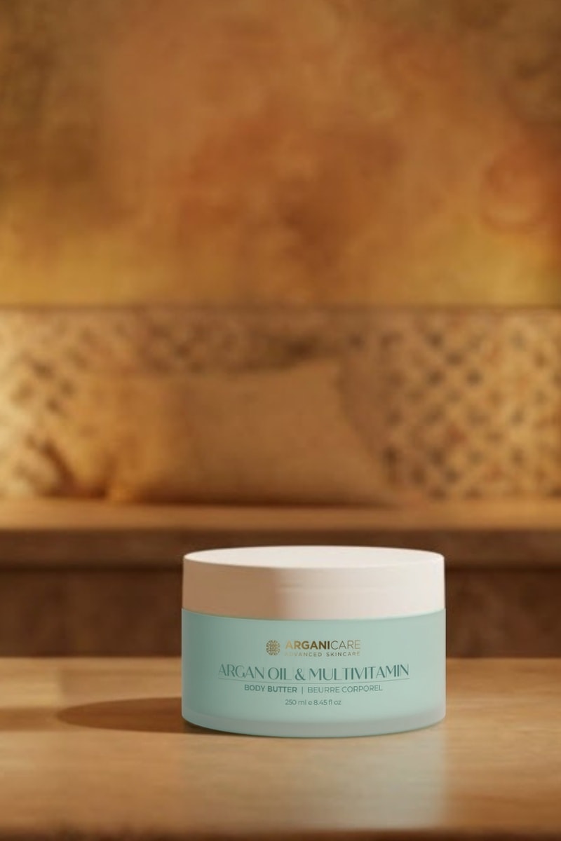 Manteiga corporal com óleo de argão e multivitaminas.