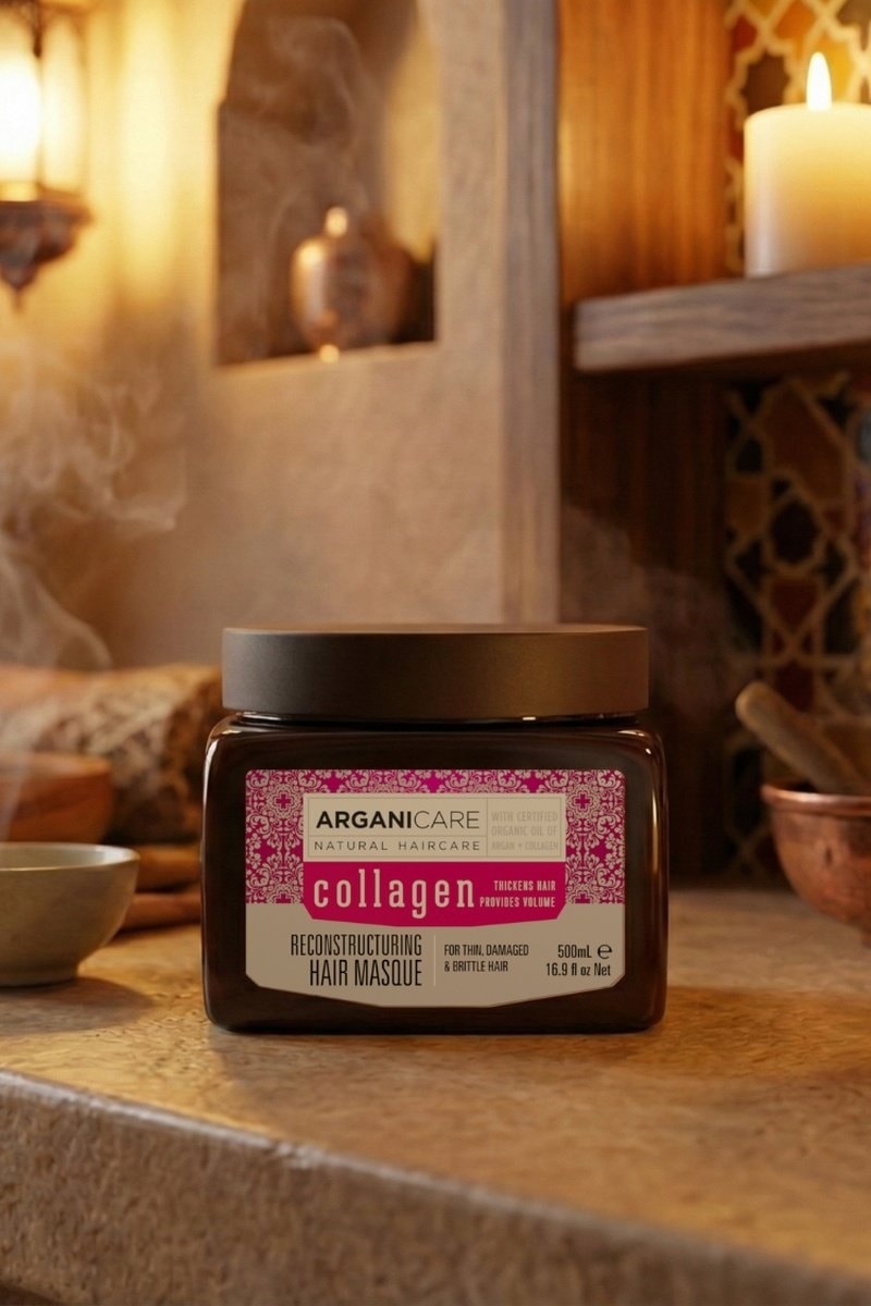 Enriquecido com óleo biológico de argão bio e colagénio.