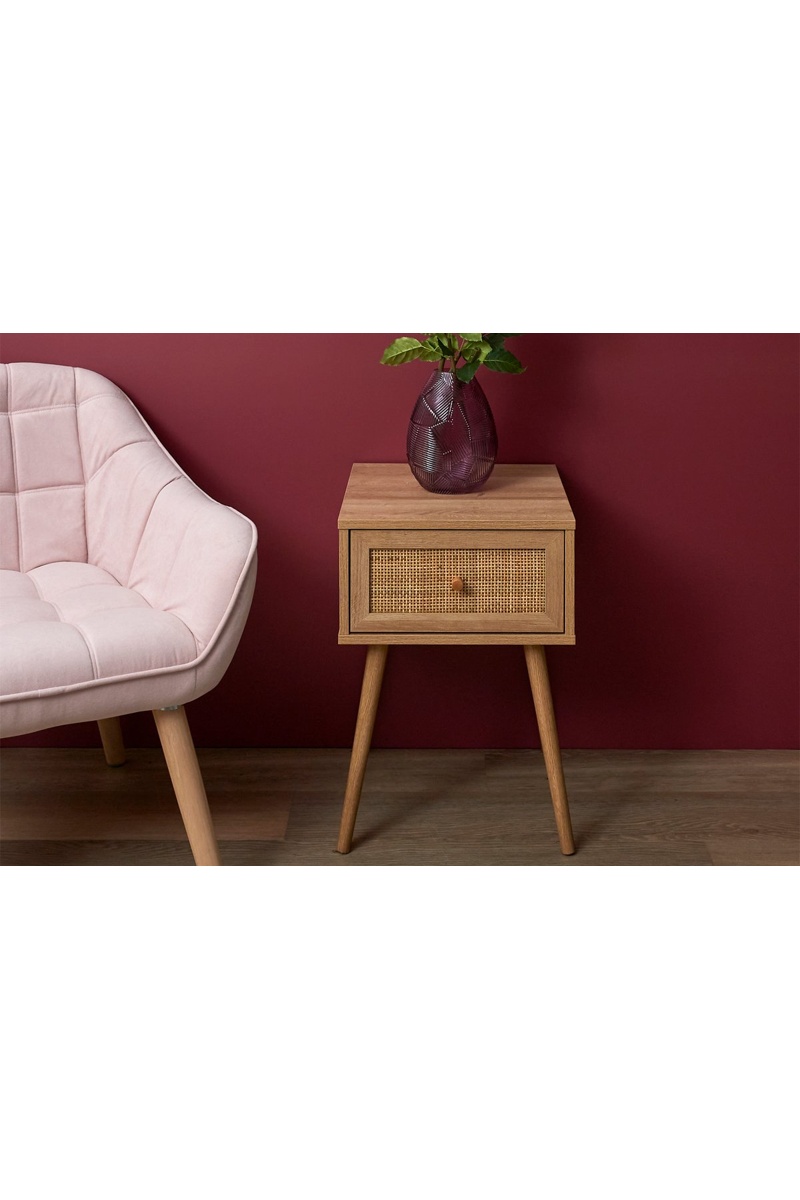 Mesa de cabeceira em madeira e rotim Bali - 39 x 39 x 55,4 cm