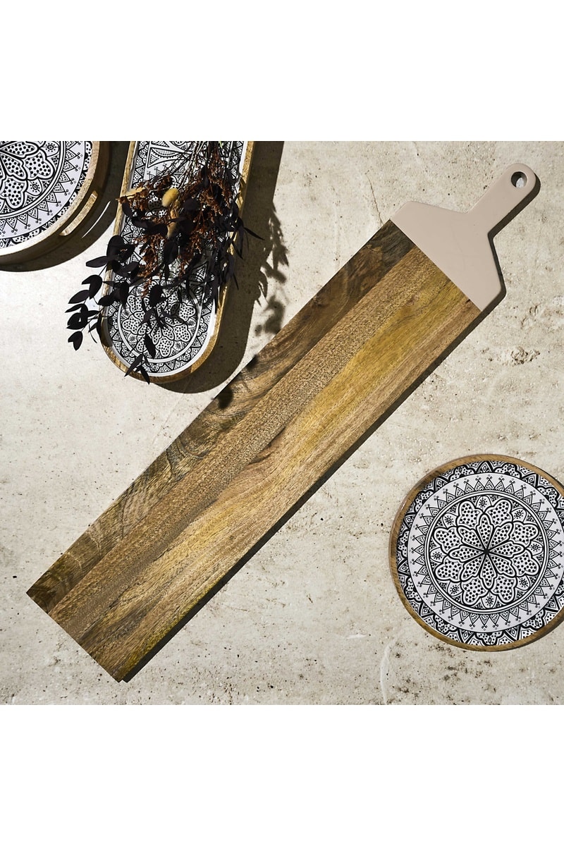 Bandeja de apresentação em madeira de mangueira - 100 x 20 x 1,5 cm