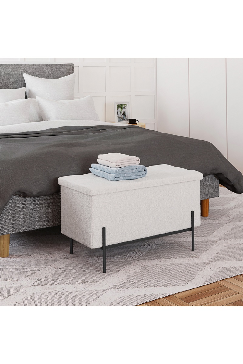 Composição: tecido de poliéster bouclettes, metal e MDF