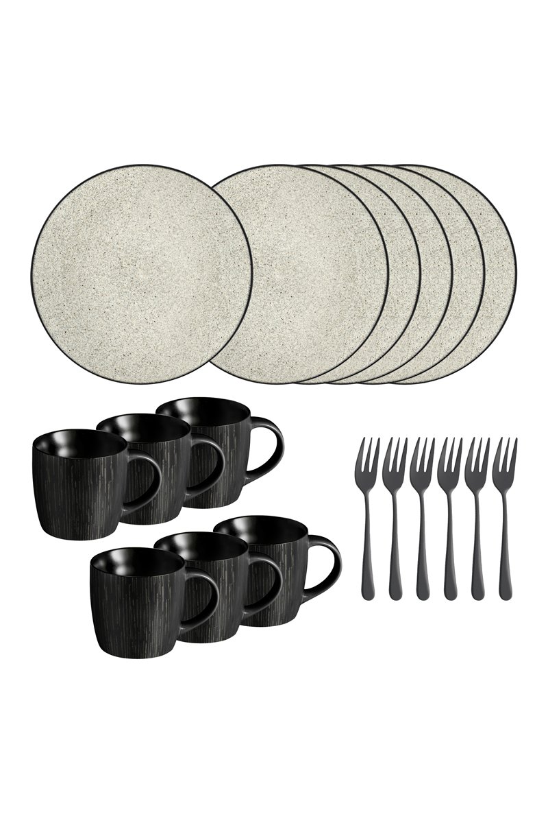 Serviço de sobremesa em grés e aço inoxidável - 18 peças