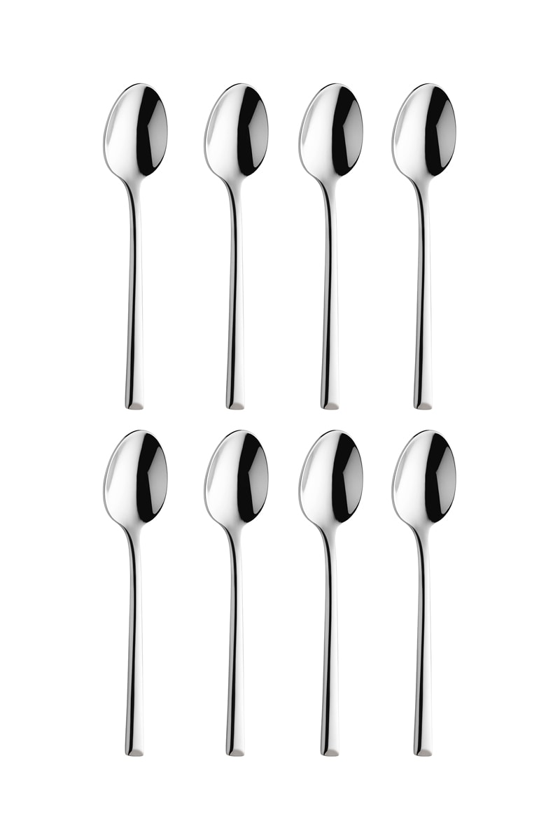 8 colheres em aço inoxidável.
