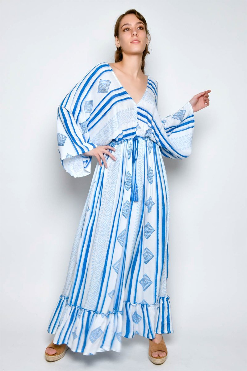 Vestido comprido - Branco - Branco e azul