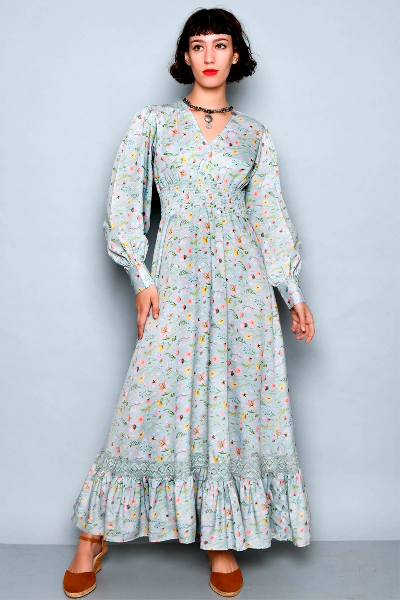 Vestido comprido - Verde-água e rosa - Verde e rosa