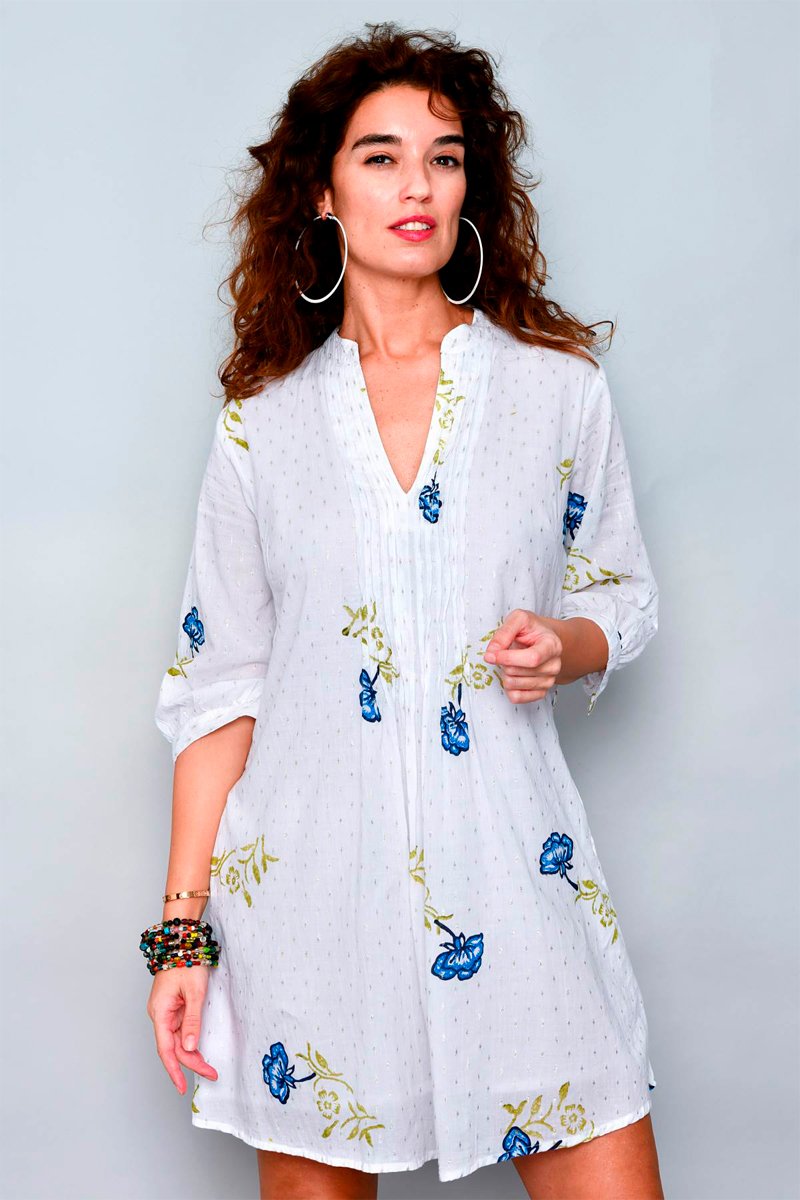 Kurta trapézio - Branco - Branco, azul e verde