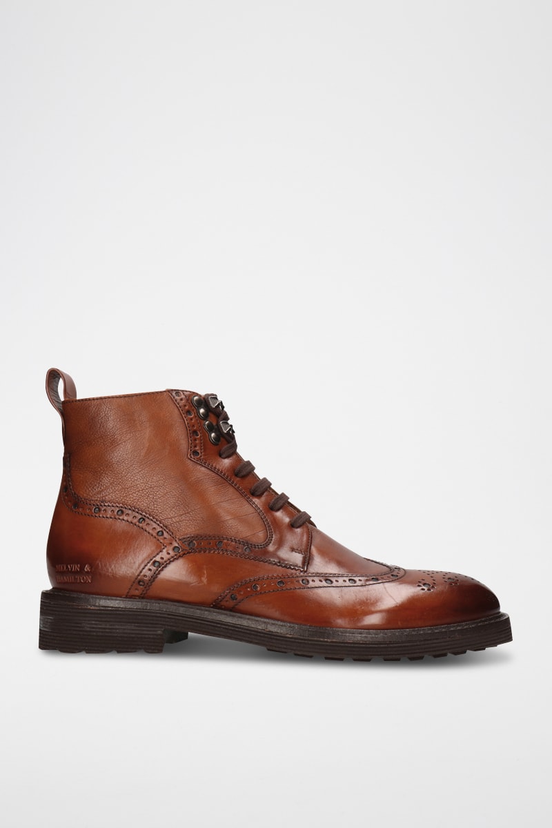 A Melvin & Hamilton reivindica um savoir-faire inglês cujas solas são cosidas e o couro de qualidade é o principal trunfo. Minuciosamente escolhidos, os couros da Melvin & Hamilton são totalmente tingidos à mão, segundo um processo específico que precisou de anos de pesquisa. Um aspeto autêntico que faz da Melvin & Hamilton uma marca incontornável.