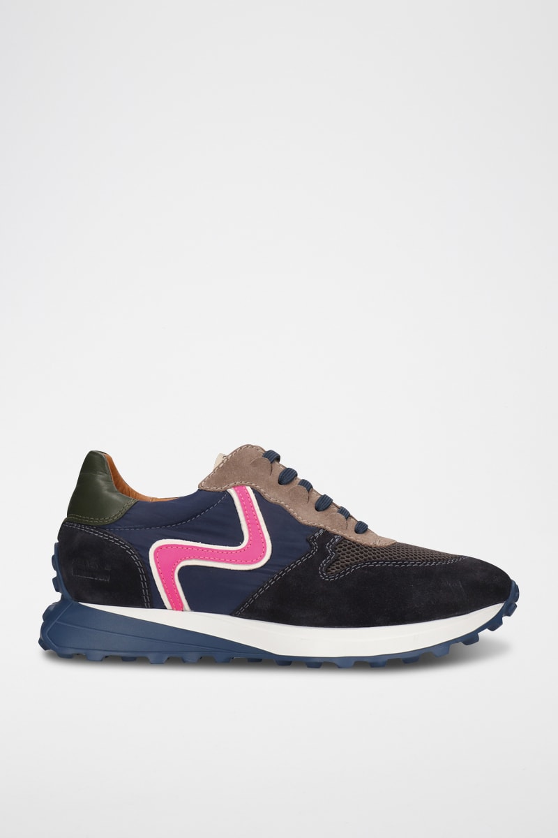 Sapatilhas em nobuck e couro.