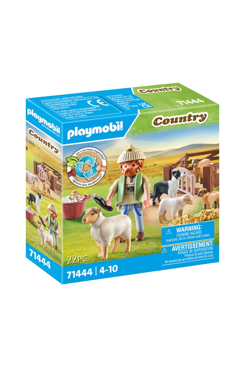 22 acessórios incluídos tais como: figura pastor com chapéu, bastão de pastor, ovelha, cordeiro, cabra, cesto com pinhas, vedação, comedouros.