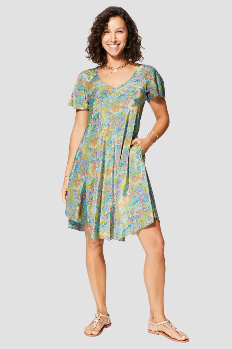 Vestido midi - Verde - Azul, verde e laranja