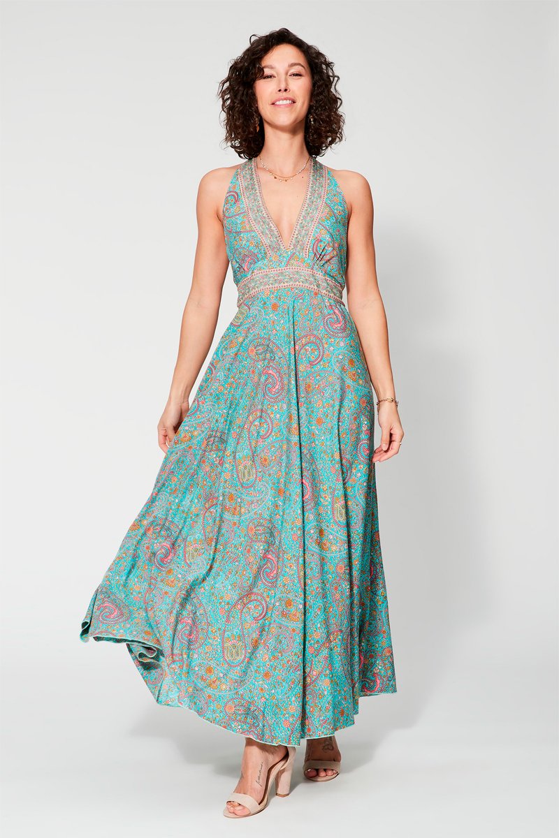 Vestido comprido - Turquesa - Azul