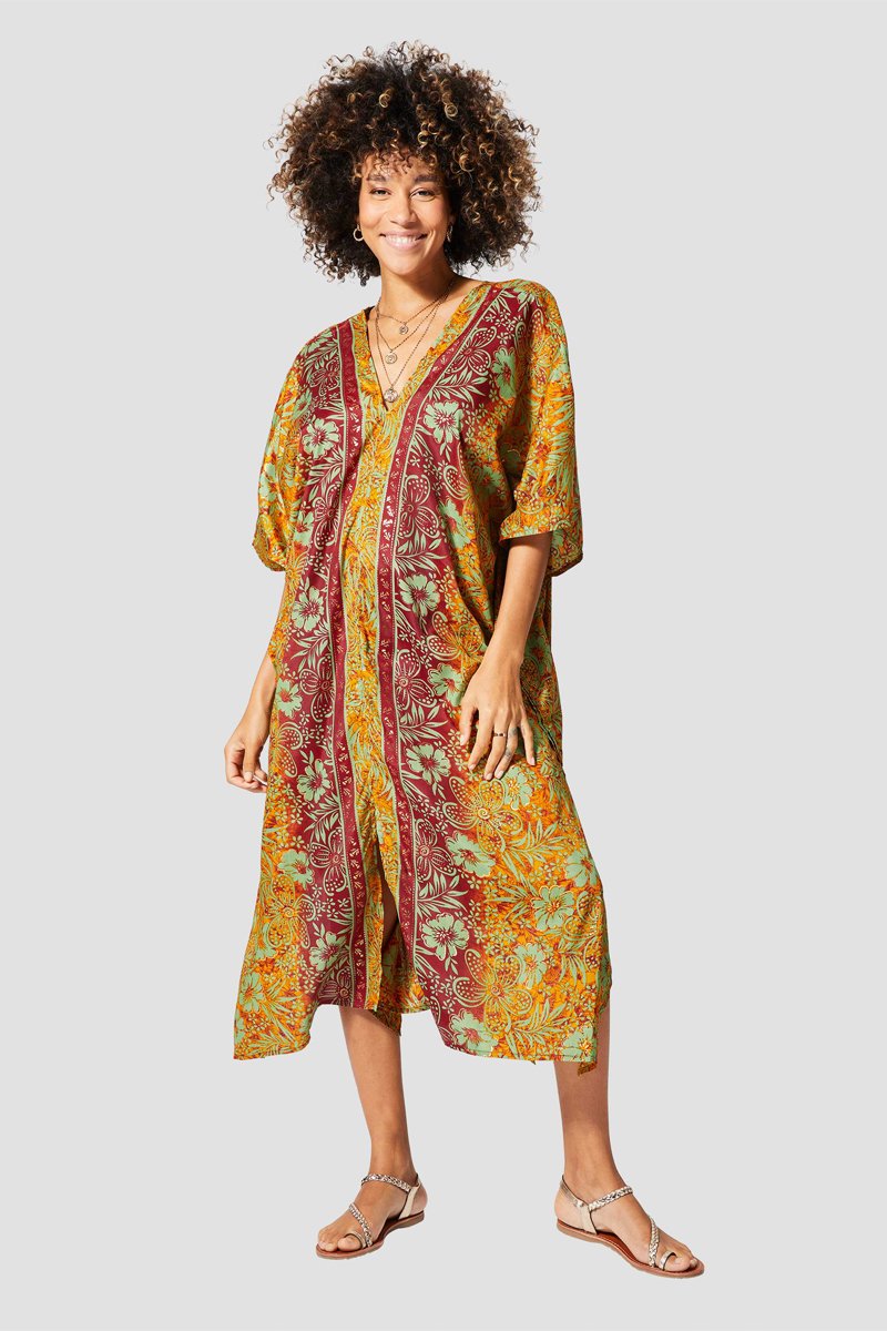 Cafetã de mangas curtas.