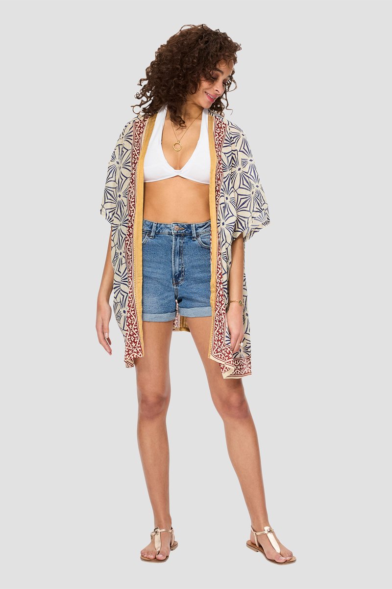 Quimono de mangas curtas.